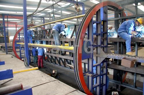 采用自動(dòng)定位方式,所有工位均采用自動(dòng)焊接。整條生產(chǎn)線采用滾輪輸送方式,在生產(chǎn)過(guò)程中,盡量避免行吊在工件上的使用,節(jié)省了行吊的使用時(shí)間,提高了工作效率。