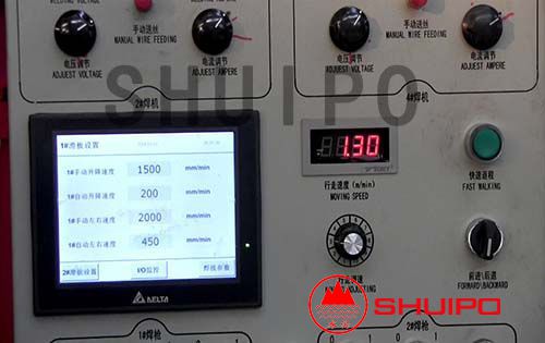 本機采用先進的PLC可編程控制技術(shù)、微電子技術(shù),焊接速度達到2m/min,能在同一工件上一次焊接兩條水平相對的焊縫,工作效率是傳統(tǒng)設(shè)備的兩倍以上;采用了可靠靈活的柔性自動仿形技術(shù),實現(xiàn)自動跟蹤,避免了對變截面部分補焊的缺點;雙弧雙絲送絲機構(gòu),確保了批量生產(chǎn)過程中穩(wěn)定的焊接成型,避免了薄板焊接時穿透現(xiàn)象。