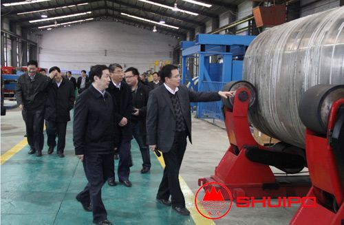 2014312日,山東省委省政府張超超副省長(圖中)一行在市縣領導的陪同下,來公司進行視察、調研。公司劉憲福董事長向張超超副省長,詳細介紹了“數控廂板自動焊接機”“異形罐體環縫TIG自動焊機”等多個公司自主研發的新產品。